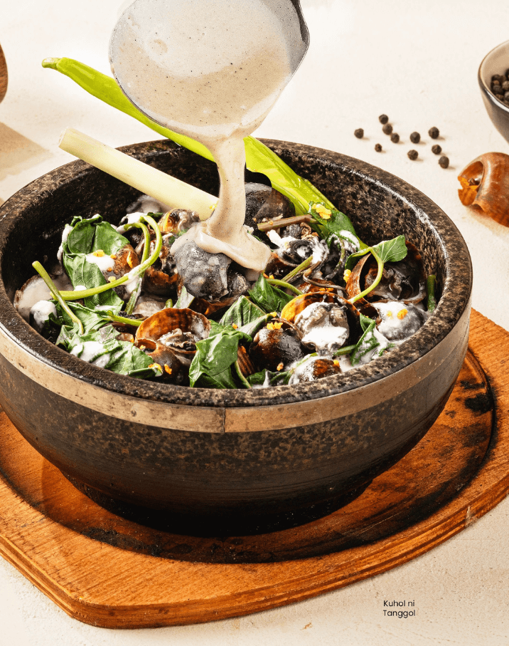 Pork shrimp, taro leaves, garlic, onion, chili, tinapa flakes, coconut milk